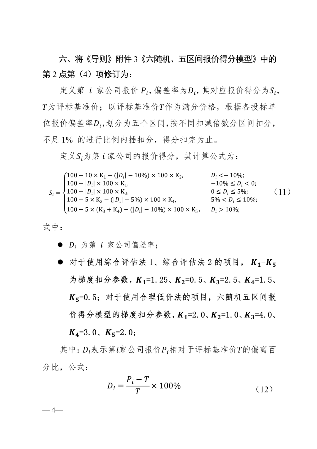 五、对《导则》附件1《施工项目评标办法适配表》进行修订,详见本通知附件2,各市州另有从严规定的,例如扩大经评审最低价法适用范围的,从其规定。