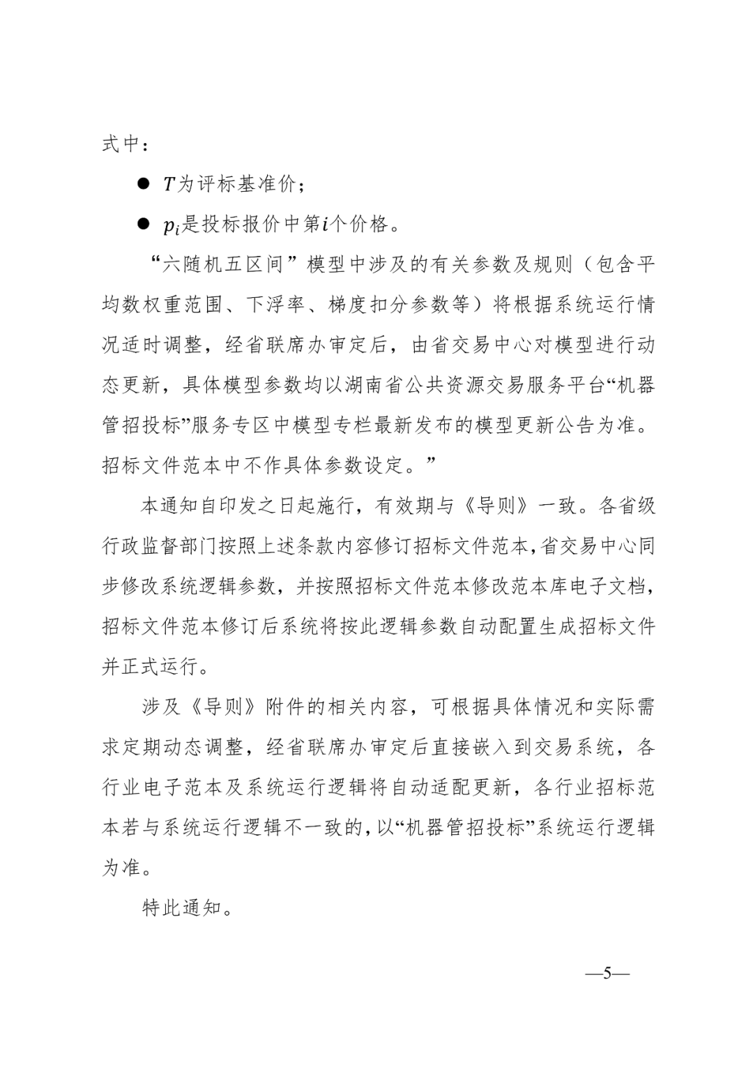自《湖南省公共资源交易数字化、模块化招标文件范本框架导引及编制导则》(湘发改法规规〔2024〕958号)(以下简称《导则》)发布后,适配《导则》开发的“机器管招投标”系统于2025年2月27日上线试运行。根据项目实施情况分析及各方反馈,“机器管招投标”切实提高了交易效率、降低了人为干预风险,从技术、机制、管理等层面形成了有效治理合力。为持续完善《导则》的科学性和适用性,经省人民政府同意,结合各市场主体反馈建议及已评标项目数据的分析结果对《导则》部分条款作如下修改: